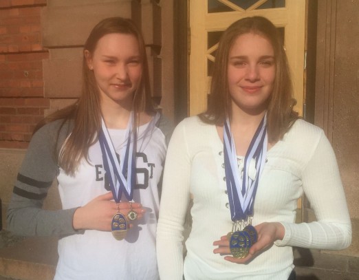 Lahden lyseon urheilulukion Melek Ayarci (oik.) voitti yleisen sarjan Suomen mestaruuden 200 metrin selkäuinnissa nuorten ennätysajalla maaliskuussa 2016. Julia Bruneau saavutti pronssia nuorten 100 metrin vapaauinnissa. Lisäksi tulevaisuuden masters-uimarit uivat Ari Palveen valmentaman Lahden Uimaseuran joukkueessa yleisen sarjan pronssia. Kuva: Ari Jaakkola