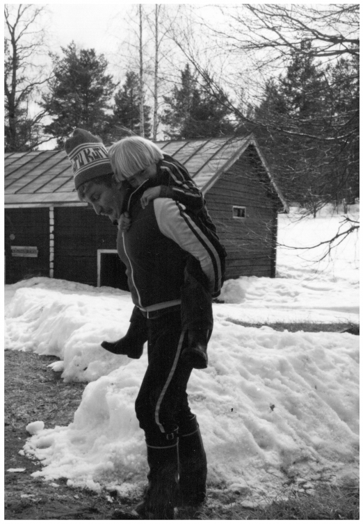 Kun pienen voimat loppuivat, apua löytyi KuTU:sta. Martti Holopainen pelastamassa pikkumiestä Luhastensalossa keväällä 1982. Sirpa Hiltusen kokoelma.