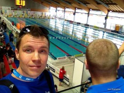 Timo Leikkasen kanssa Italian Riccionessa tutustumassa kisa-altaaseen masters-MM-kisoissa 2012.