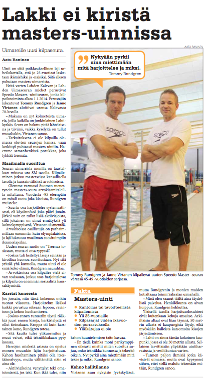 Speedo Masters Finland on Suomen Uimaliiton jäsen 1.1.2014 alkaen.