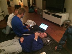 Lauantain kisojen jälkeen pidettiin seuran syyskokous. Syyskokouksessa puheenjohtajan nuijaa heilutti Kai Poutanen. Kuvassa Poutanen (vas.) ja Janne Virtanen esittelevät kokousväelle budjettiesitystä. Tommy Rundgren kannattaa esitystä.